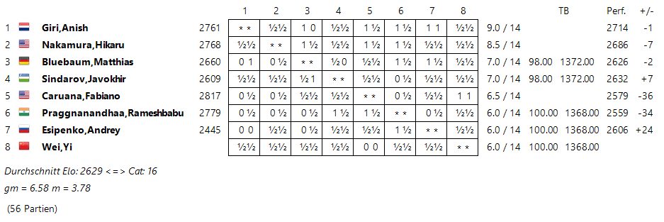 Aber die Favoritenrolle ist ebenfalls immer eine Bürde und so kann es auch gut sein, das wieder ein Außenseiter das Turnier gewinnt und dann auch gegen Gukesh - oder auch nicht.