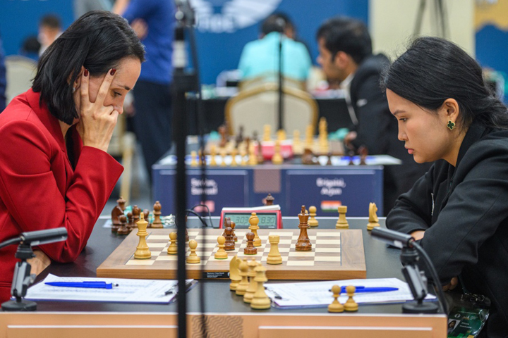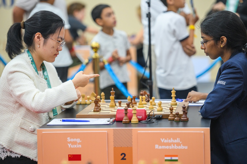Nach ihrer ersten Niederlage in Runde 8 hielt Vaishali Rameshbabu Song Yuxin in einer ausgeglichenen Begegnung ausgeglichen und so einigten sie sich auf Remis. Beide stehen nun bei 6,5/9.