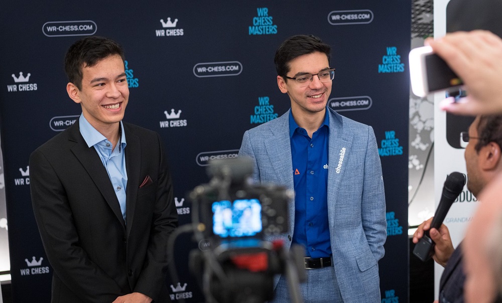 Nodirbek Abdusattorov und Anish Giri können das Turnier nicht mehr gewinnen, doch unzufrieden scheinen sie nicht zu sein