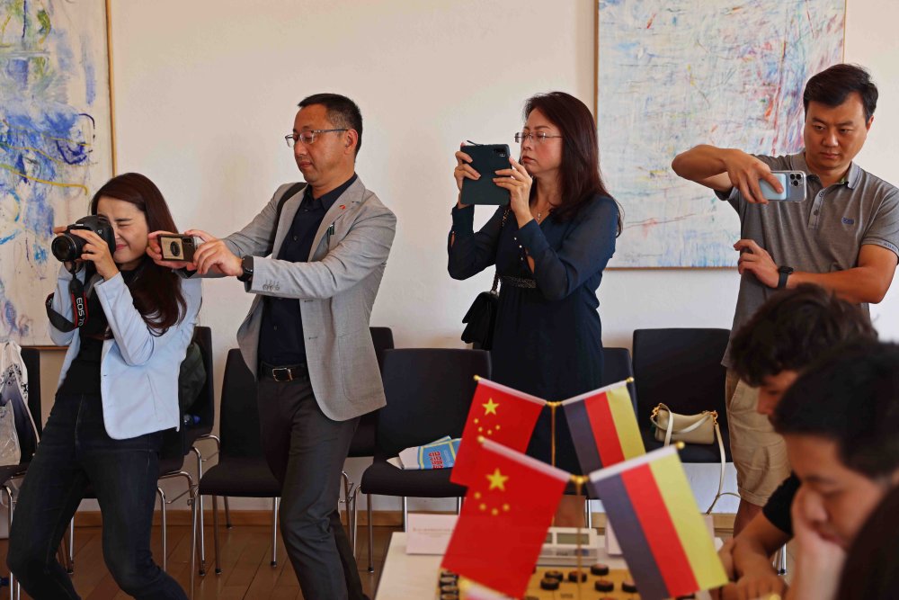 Der heimliche Star bei diesem Event war der Xiangqi-Roboter SenseRobot. Der KI-unterstützte Roboter wurde erstmals in Deutschland vorgeführt und erfreute alle Gäste. Er arbeitet mit optischer Bilderkennung und kann die Figuren mittels seines Roboterarms automatisch bewegen.