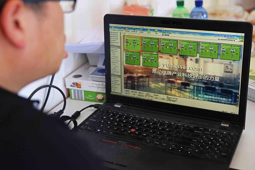 Schiedsrichter Wang Ge bei der Auslosung zur nächsten Runde. Zur Auslosung kam eine chinesische Alternative zu Swiss Chess mit professioneller graphischer Oberfläche zur Anwendung