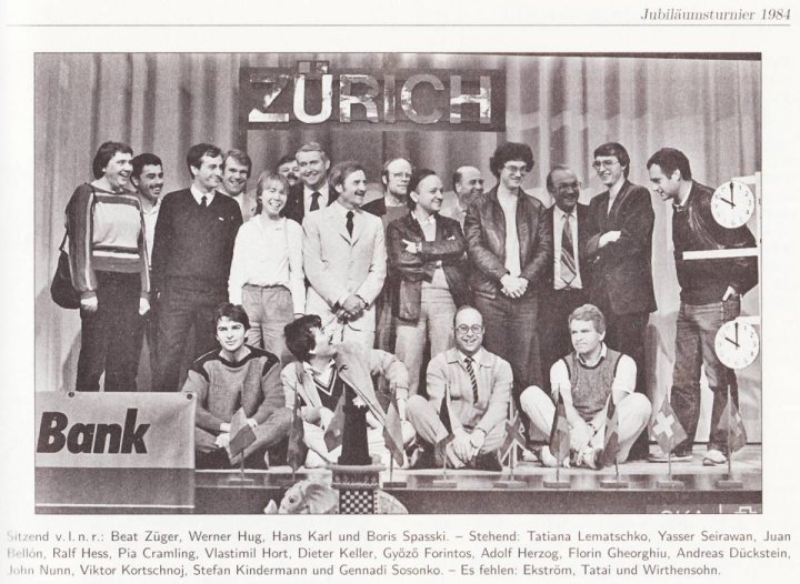 Cramling: "1984 feierte die Schachgesellschaft Zürich ihr 175-jähriges Bestehen mit der Organisation eines hochkarätigen Schachturniers. Ich war unter den 22 Spielern, die Alois Nagler eingeladen hatte.