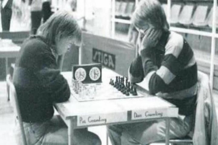 Dan während einer Partie gegen seine Schwester bei der schwedischen Meisterschaft 1981, die in Ystad nach Schweizer System mit 13 Runden und 32 Teilnehmern ausgetragen wurde. Die Cramlings trafen in Runde 6 aufeinander und spielten unentschieden. | Foto: Krister Berg via allas.se