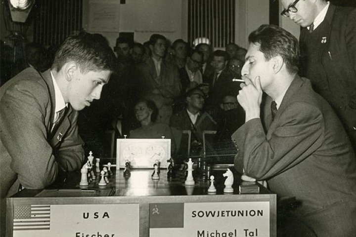 Ich hörte den Namen Bobby Fischer zum ersten Mal im Schulalter, als er 1960 mit dem USA-Team zur Schacholympiade nach Leipzig kam. Der 17-jährige Großmeister holte dort 13 Punkte aus 18 Partien, ein gelungener Einstand beim Turnier der Nationen. Auch der Dresdner Großmeister Wolfang Uhlmann verlor gegen Fischer in einem Königsinder. Damit nahm Fischer Revanche für seine Niederlage, die er zuvor gegen den Französisch-Spezialisten in Buenos Aires erlitten hatte. Uhlmann erzählte mir später: "Bei der Eröffnung der Olympiade im neuen Leipziger Opernhaus erlebten wir 'Cavalleria rusticana'. Neben meiner Frau und mir saß Bobby Fischer. Der Amerikaner war in Gedanken so mit Schach beschäftigt, dass er fast die ganze Aufführung verschlafen hat. Fischer war damals auf dem Weg in die absolute Weltspitze. Er ging immer sehr elegant gekleidet und war als junger Mann wirklich eine sympathische Erscheinung." Bobby spielte in Leipzig auch gegen den aktuellen Weltmeister Michail Tal. Das wilde Spiel dauerte nur 21 Züge, aber es war eine der hochkarätigsten Remispartien der Schachgeschichte.
