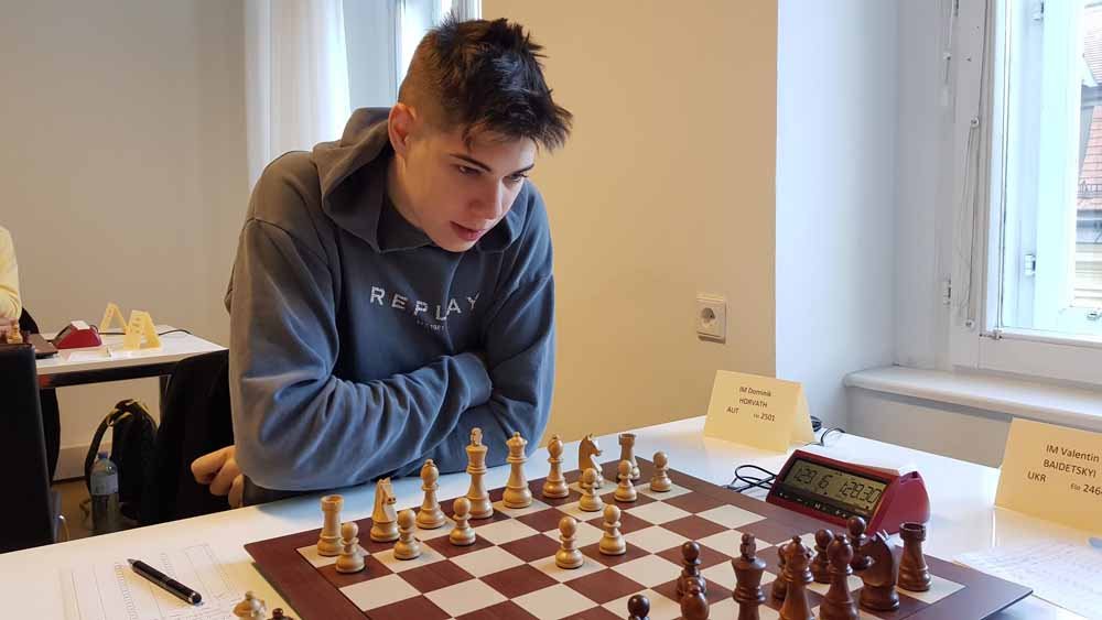 Im GM-Turnier war Dominik Horvath mit zwei Siegen gegen Marc Morgunov und Yevgeniy Roshka ideal gestartet und führte mit vier Punkten das GM-Turnier an. Zur Norm brauchte er aus den Schlussrunden aber noch zweieinhalb Punkte. Als Gegner warteten Lukas Leisch, Jakob Leon Pajeken und Tomas Polak.
